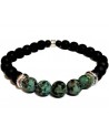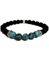 Pulsera elástica con cuentas de cerámica negra y piedras naturales verde o turquesa en el centro. Producido por el fabricante de joyas D'oz Homme.